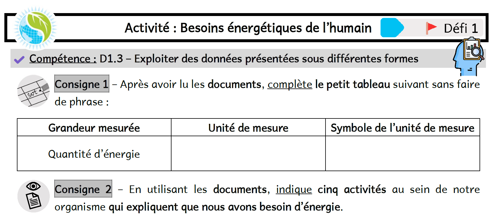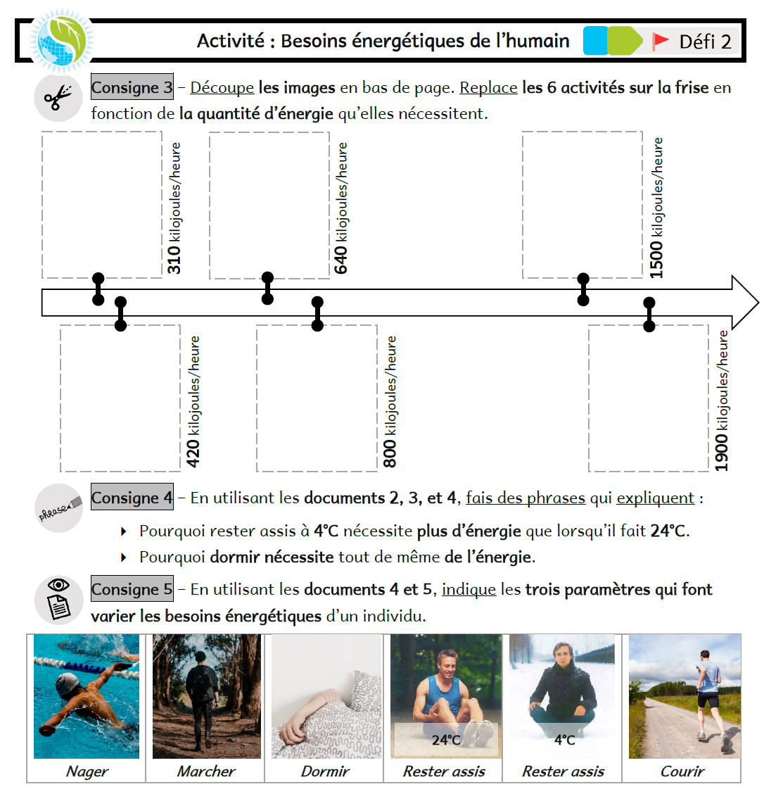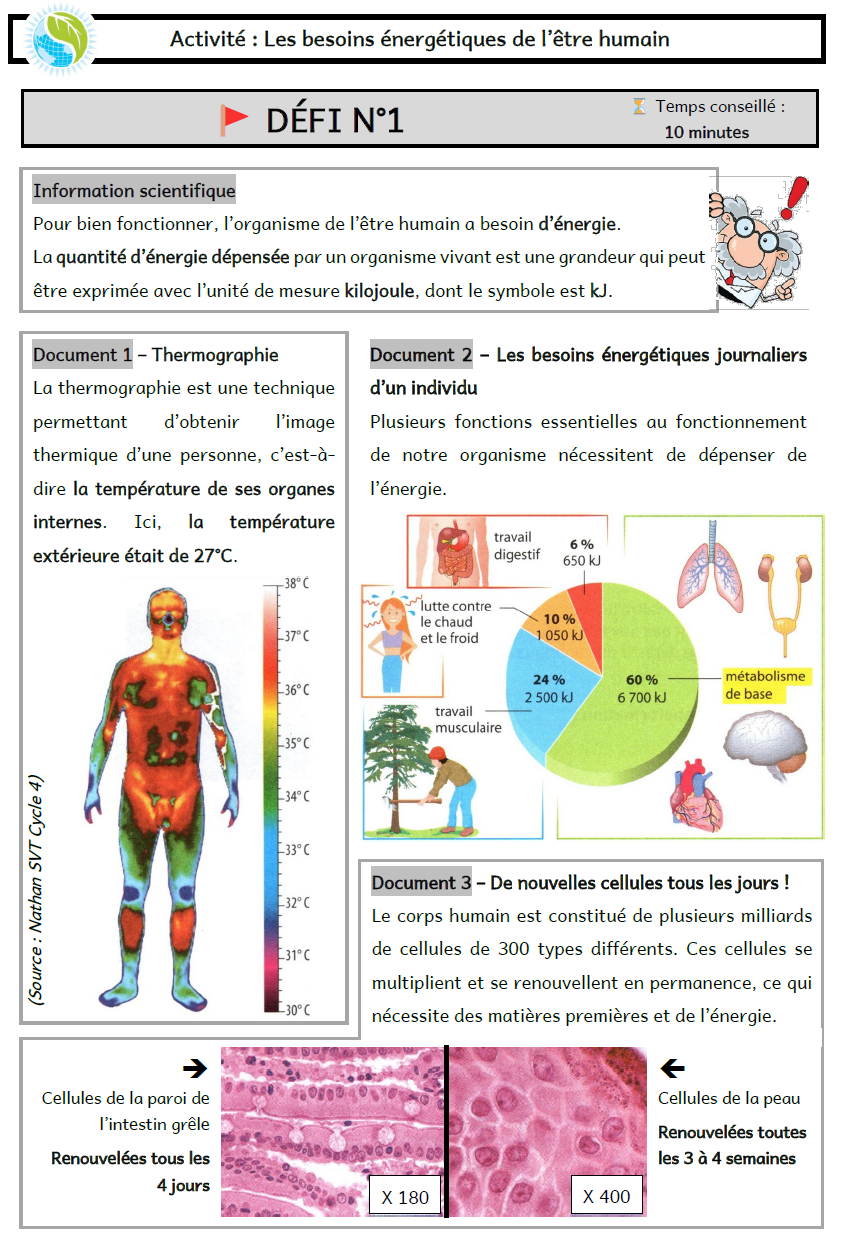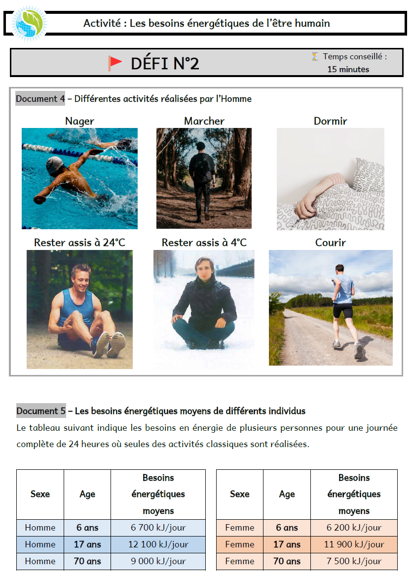 Activité 1 : Besoins énergétiques de l'humain