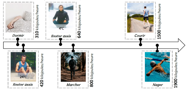 Rester assis à 4°C nécessite plus d’énergie parce que le corps doit lutter plus pour maintenir la température interne des organes à 37°C qu’à 24°C