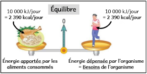 En quantité : les aliments doivent apporter autant d’énergie que notre organisme en dépense.