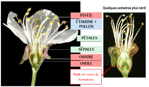 La rencontre des grains de pollen et de l’ovule entraine la transformation de la fleur en fruit !