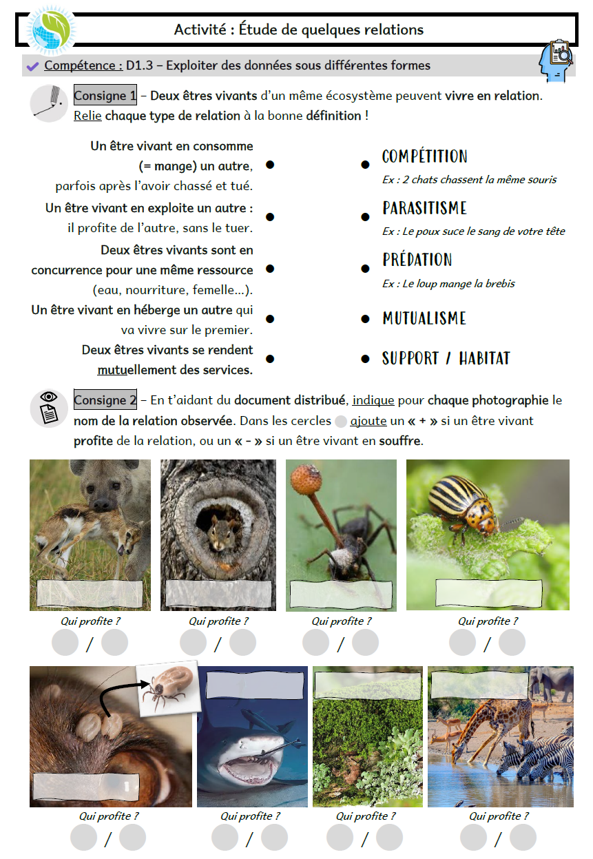 Les êtres vivants[1] d'un écosystème[2] ne vivent pas seuls et isolés !