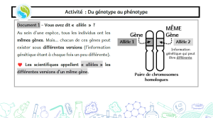 L’ensemble des allèles d’un individu constitue sont génotype responsable de la réalisation du phénotype de l’individu.