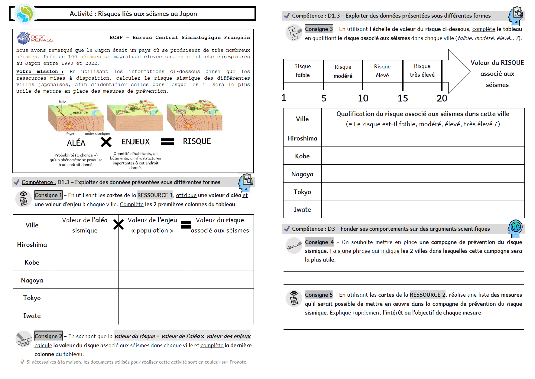 Activité 7 : Risques liés aux séismes au Japon