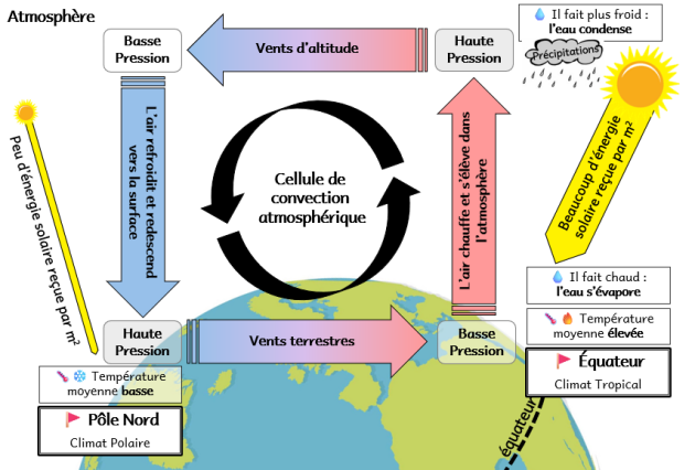 L’inégale répartition des températures terrestres génère des mouvements verticaux des masses d'air :