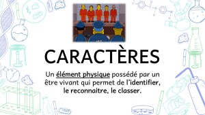 Caractère = un élément physique possédé par un être vivant qui permet de l’identifier, le reconnaitre, le classer.
