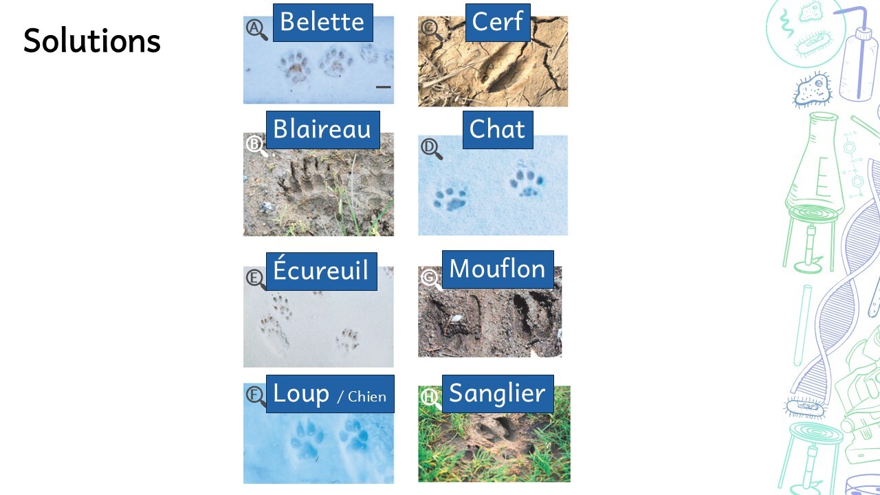 Par exemple : sur la photographie, quelle est l’espèce possédant un tête, possédant 4 pattes, de couleur marron, possédant une carapace ?