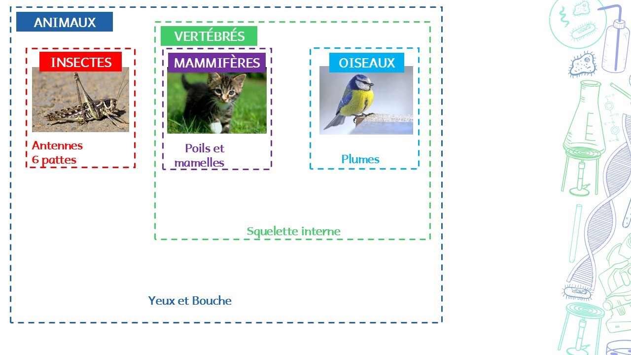 Les classifications par groupes emboités dépendent des caractères communs partagés par les différentes espèces d’êtres vivants.